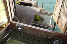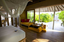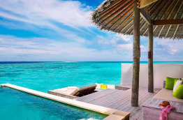 Les Laamu Water Villas sont identiques dans les aménagements, en revanche, elles sont situées aux extrémités des jetées et bénéficient d'une meilleure vue. La catégorie « Sunset Laamu Water Villa » offre une orientation privilégiée au soleil couchant.