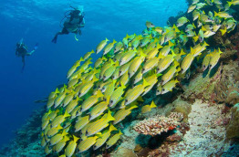 Six Senses Laamu bénéficie d’un magnifique récif sur une très longue portion de l’île face à l’océan. Il commence proche de la plage, offre une mise à l’eau idéale depuis les escaliers en bois installés devant le bar Chill, et continue jusqu’au bout de la jetée numéro 1 des villas sur pilotis. Vous pourrez faire du snorkeling directement sur le tombant, et il n’est pas rare de rencontrer des tortues. Les coraux durs sont de très bonne qualité et le récif est peuplé d’une nuée de bancs de poissons tropicaux. Le matériel de snorkeling est gracieusement prêté à tous les clients.