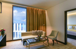 20 Souq Suite s’étendent sur environ 71 m2. Elles offrent une grande chambre et un salon-salle à manger séparé. Ses grandes baies vitrées offrent une vue imprenable sur le souk, et les gratte-ciels de West Bay un peu plus loin.